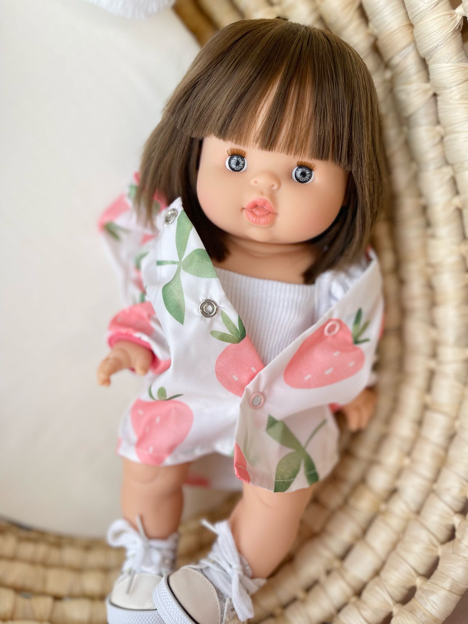 Lalka jest wykonana w Hiszpanii z najlepszego, pachnącego wanilią winylu.