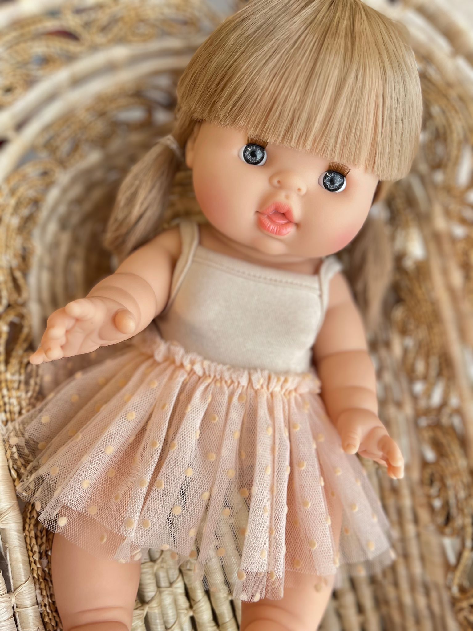 Lalka jest wykonana w Hiszpanii z najlepszego, pachnącego wanilią winylu.