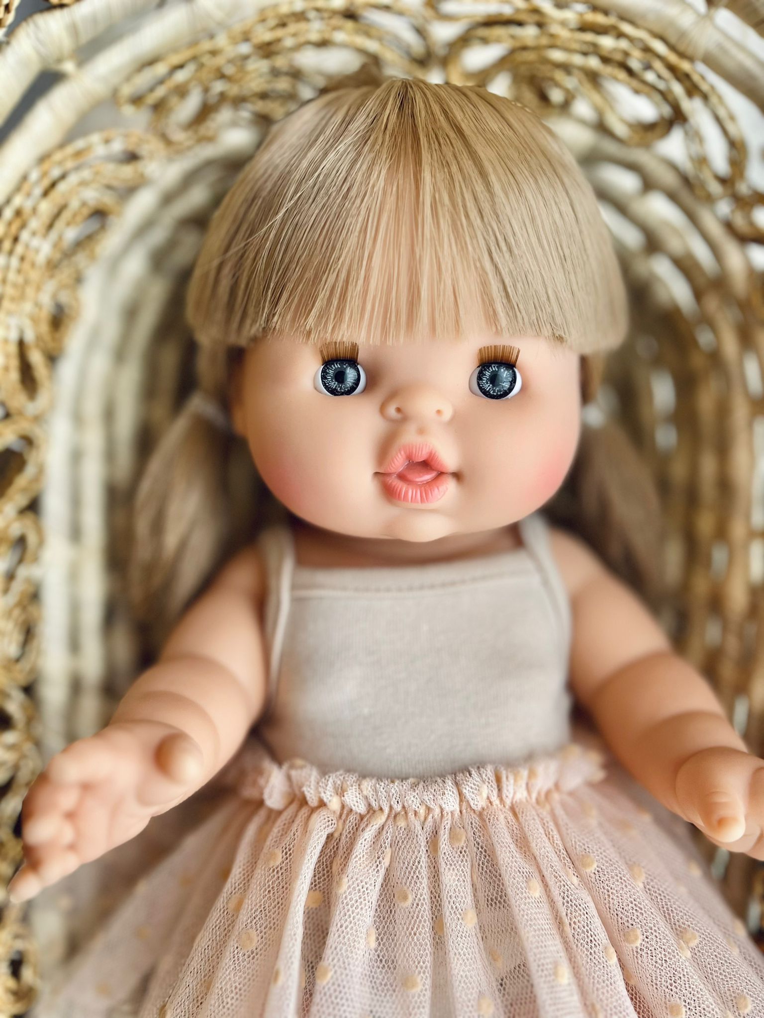 Bobas golasek Yze marki Minikane to lalka dziewczynka z blond włoskami i niebieskimi oczkami.