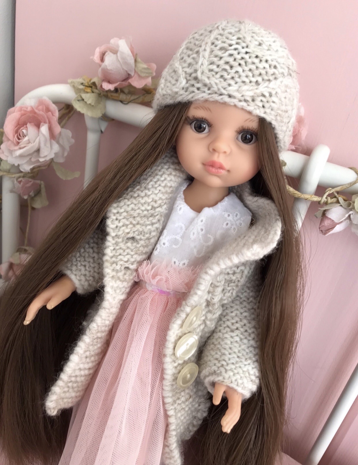Lalka Carol jest wykonana ręcznie w Hiszpanii z najlepszego, pachnącego karmelem, winylu. Laleczka została pięknie i starannie wykonana - ma bardzo długie brązowe włoski, idealnie zachowane proporcje oraz śliczne oczy z rzęsami.