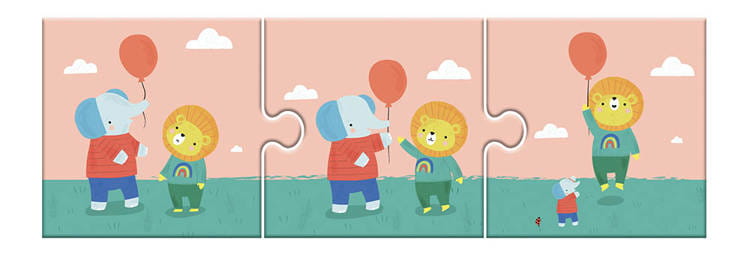 Puzzle drewniane - Codzienne historie od Auzou. To zestaw składający się z 6 zestawów drewnianych puzzli, zapakowanych w ładne pudełko z szybką. Do zestawu dołączona jest również drewniana podstawka, stanowiąca bazę do układania puzzli. Układanka porusza tematykę codzienności i przyczynowości, dzięki czemu pomoże maluchom zrozumieć tego typu zagadnienia. Wśród bohaterów umieszczonych na puzzlach zajdziecie między innymi uroczego niedźwiadka, lwa i słonia. Idealny pomysł na prezent i wspaniałą zabawę dla malucha. Puzzle zostały stworzone we współpracy z psychiatrą dziecięcym - Sophie Lhomelet-Chapellière.