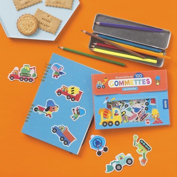 Zestaw 100 naklejek Na budowie od Auzou. Zestaw zawiera 100 naklejek utrzymanych w tematyce budownictwa i sprzętów, które możecie spotkać na placu budowy. Świetnie sprawdzą się podczas wykonywania różnych projektów plastycznych oraz tworzenia swoich własnych historii i opowieści z ich użyciem. Naklejki nie będą sprawiać problemów maluchom, bardzo łatwo można je odkleić. Bardzo poręczny zestaw doskonale sprawdzi się w trakcie podróży. Doskonały zarówno dla dziewczynek, jak i dla chłopców. Piękne ilustracje i doskonała jakość wykonania.