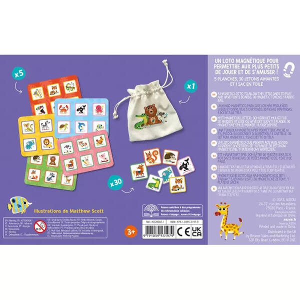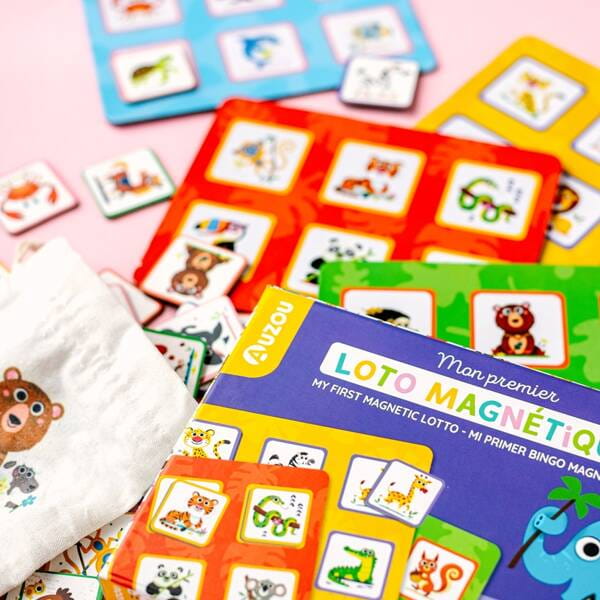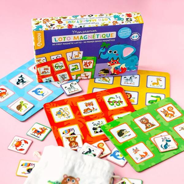 Gra planszowa "Lotto dla dzieci" od Auzou. Magnetyczne lotto dla najmłodszych. Zestaw zawiera: 5 uroczo ilustrowanych plansz do gry, 30 magnetycznych żetonów, 1 pięknie ozdobionych materiałowy woreczek do przechowywania żetonów. Wspaniała zabawa gwarantowana!