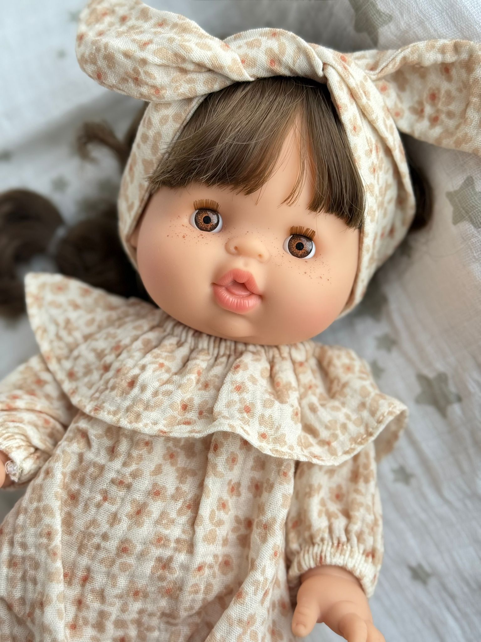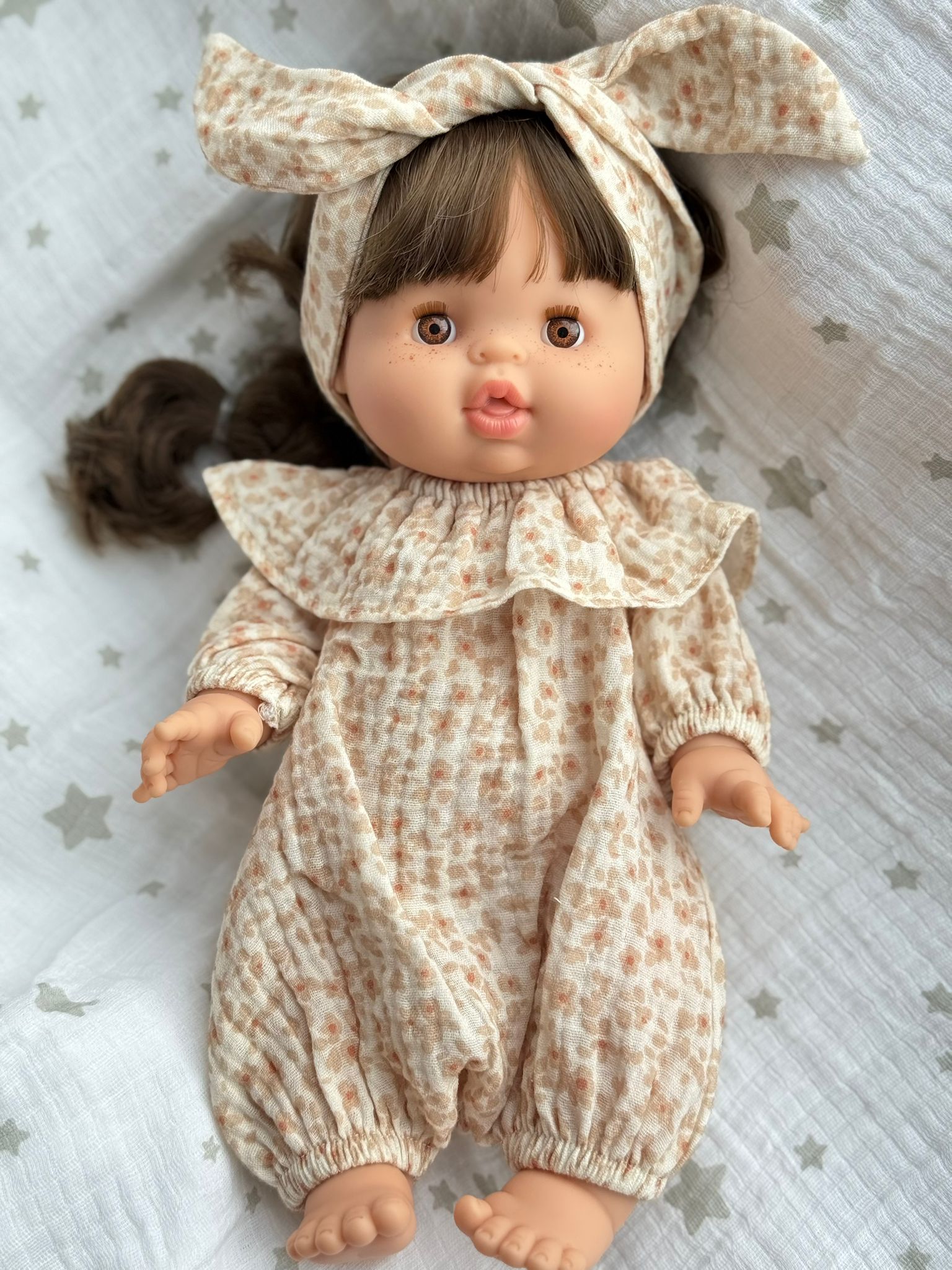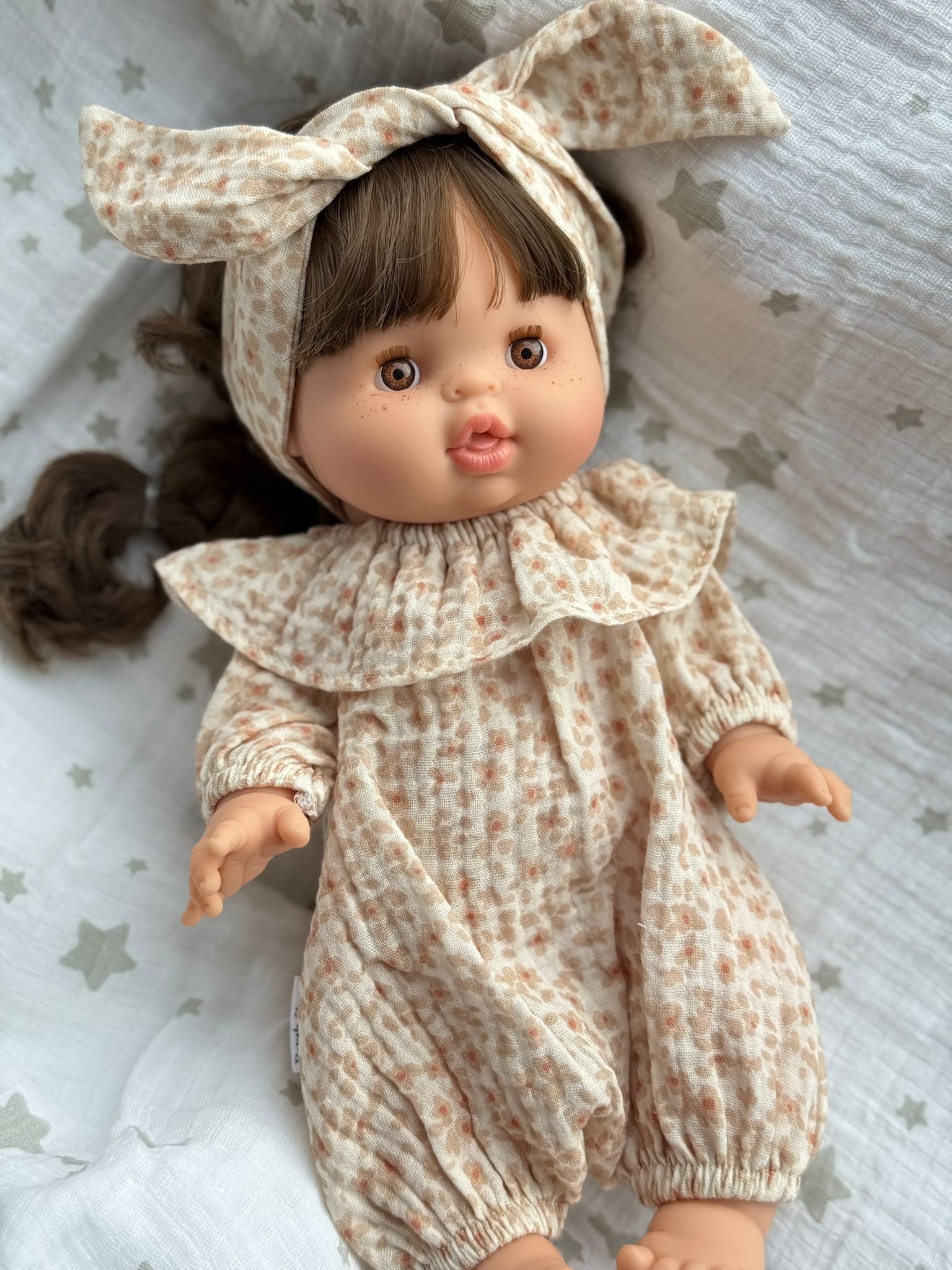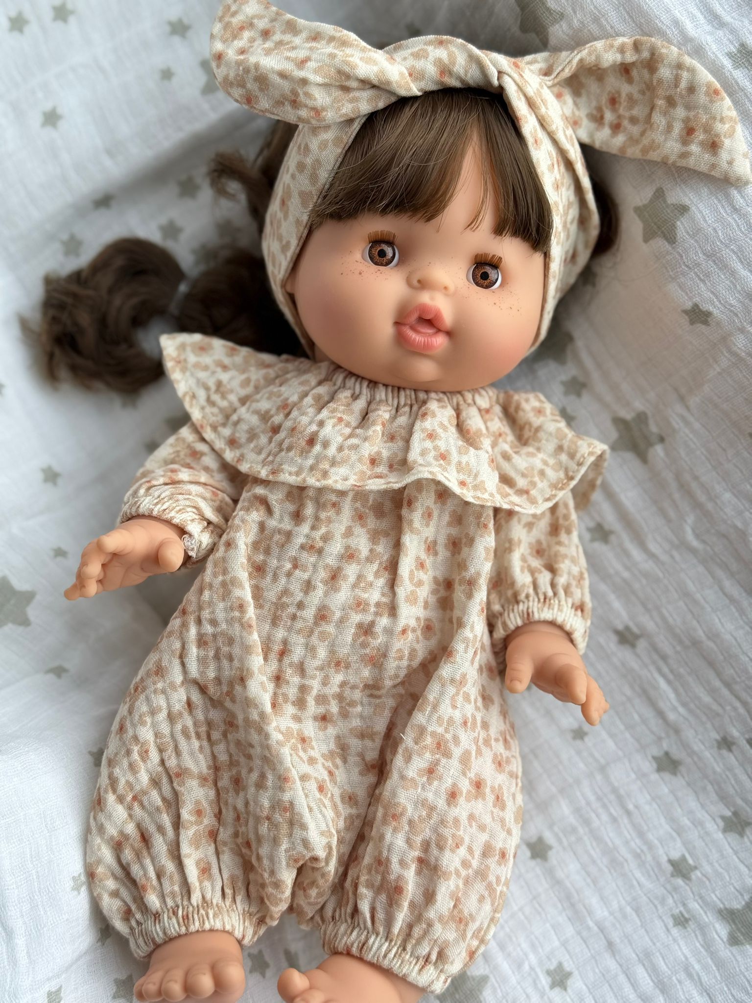 Kombinezon muślinowy z falbanką i opaską dla lalki 34–38 cm Miniland, Minikane, Paola Reina
