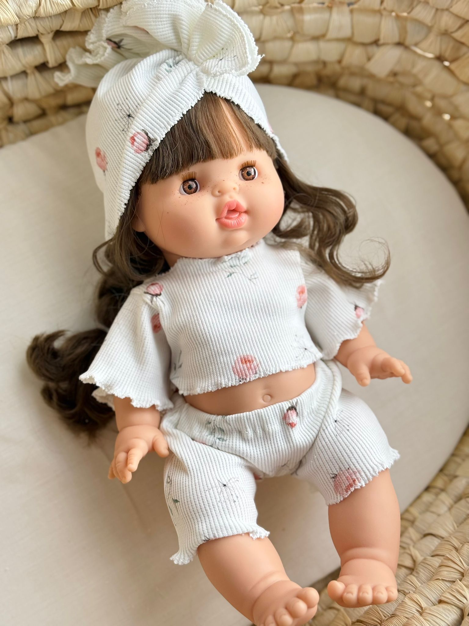 Komplecik z prążkowanej bawełny - Róża i gałązki - ubranko dla lalki