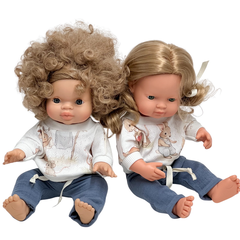 Ubranko zostało zaprojektowane z myślą o lalkach o wysokości 34–38 cm, dzięki czemu doskonale pasuje na popularne modele, takie jak Miniland, Minikane czy Paola Reina. Miękka, przyjemna w dotyku bawełna zapewnia łatwe zakładanie i zdejmowanie, co wspiera rozwój samodzielności dziecka podczas zabawy.