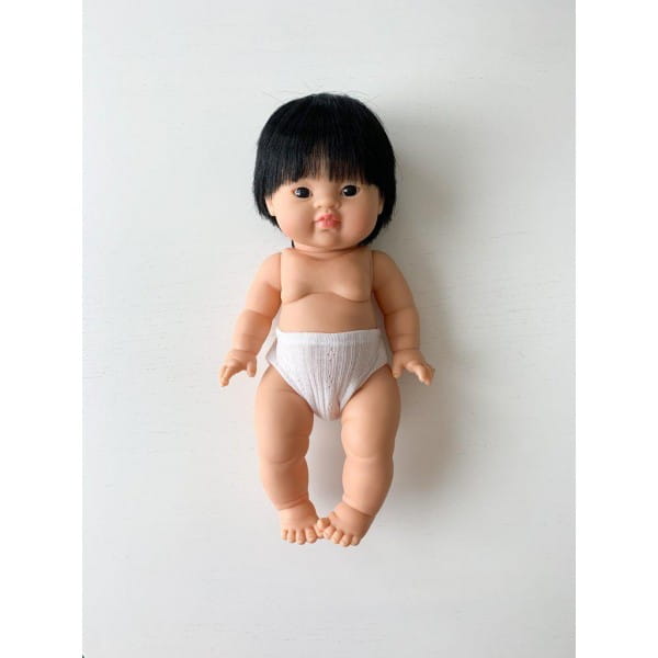 Bobas golasek Jude marki Minikane to lalka chłopiec z prostymi, czarnymi włoskami, jasną skórą i ciemnymi oczkami.
