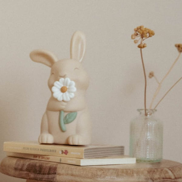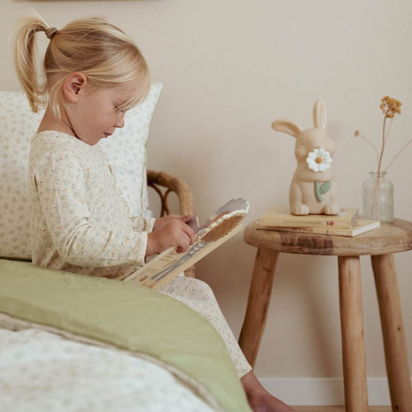 Lampka Króliczek od Little Dutch. Pozwól lampce świecić kojącym światłem w pokoju, a Twój maluch w mgnieniu oka znajdzie się w krainie snów. Lampka nocna w kształcie uroczego królika daje dziecku poczucie bezpieczeństwa i komfortu spokojnego zasypiania. Bezprzewodowa lampka LED świeci miękkim światłem i wyłącza się automatycznie po 12 minutach, aby oszczędzać baterie. W zestawie trzy baterie guzikowe LR44.