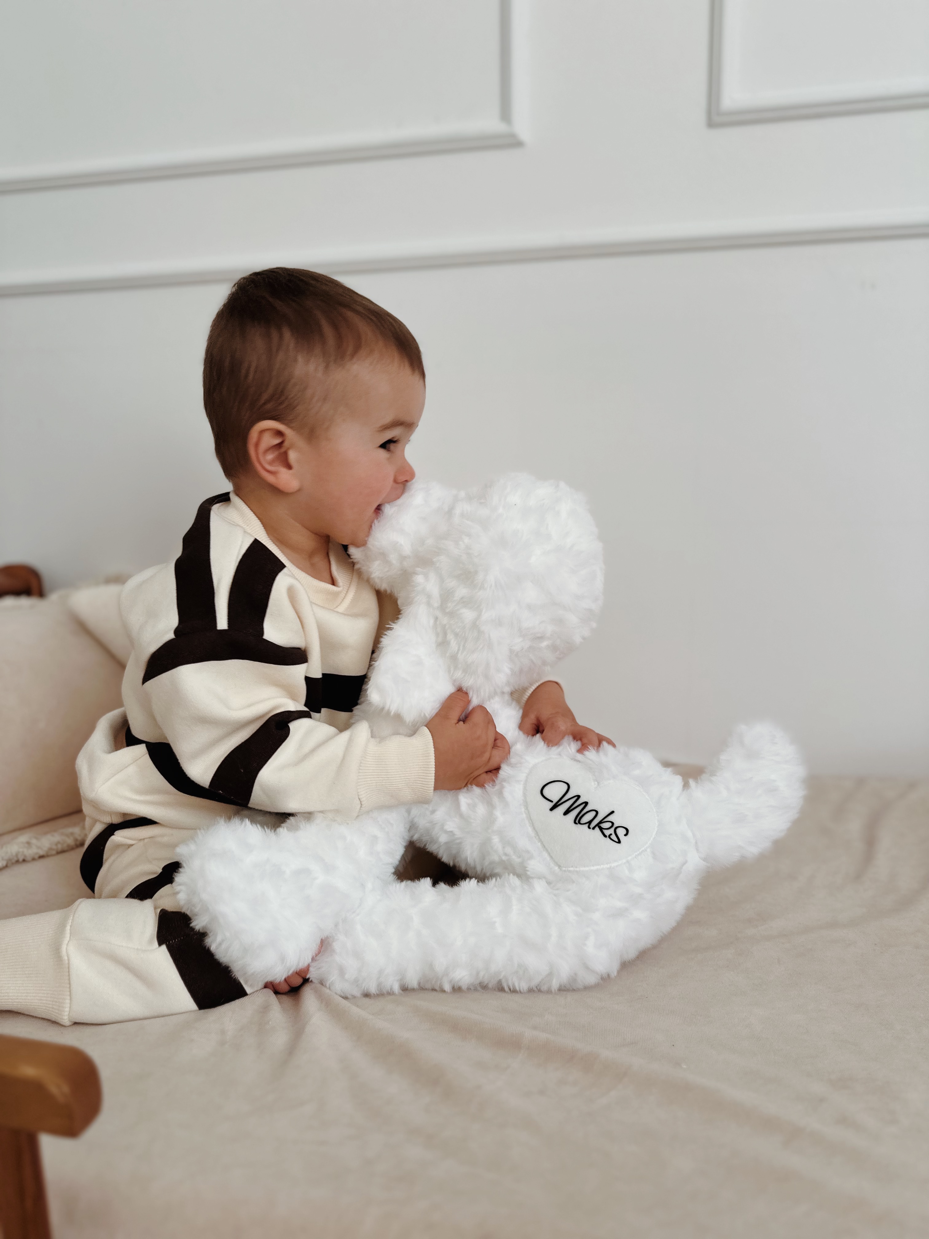 Dzięki starannie wykonanej personalizacji, każdy pluszak staje się jedyny w swoim rodzaju – z imieniem dziecka tworzy wyjątkową więź i szybko staje się jego ulubionym towarzyszem codziennych przygód. To także doskonała dekoracja pokoju dziecięcego, która pięknie prezentuje się na zdjęciach i dodaje wnętrzu ciepła oraz charakteru.