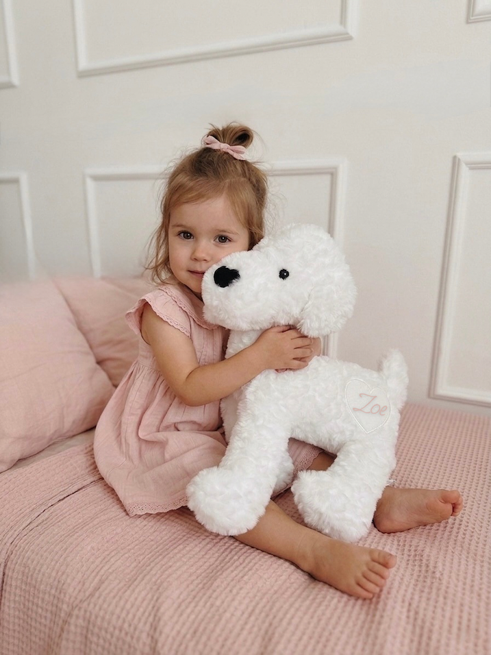 Nasz pluszowy maltańczyk to personalizowany pluszak z imieniem, który możesz stworzyć dokładnie tak, jak chcesz. Na przytulance umieścimy imię dziecka lub imię jego wymarzonego pieska, dzięki czemu prezent nabiera wyjątkowego, osobistego charakteru.