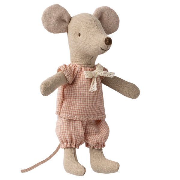 Myszka Młodsza Siostra w pudełku marki Maileg to urocza, kompaktowa przytulanka, która od razu zyska serce dziecka. Zaprojektowana w charakterystycznym, skandynawskim stylu Maileg, łączy miękką tkaninę z drobnymi, starannie wykonanymi detalami, tworząc miniaturowego towarzysza zabawy.