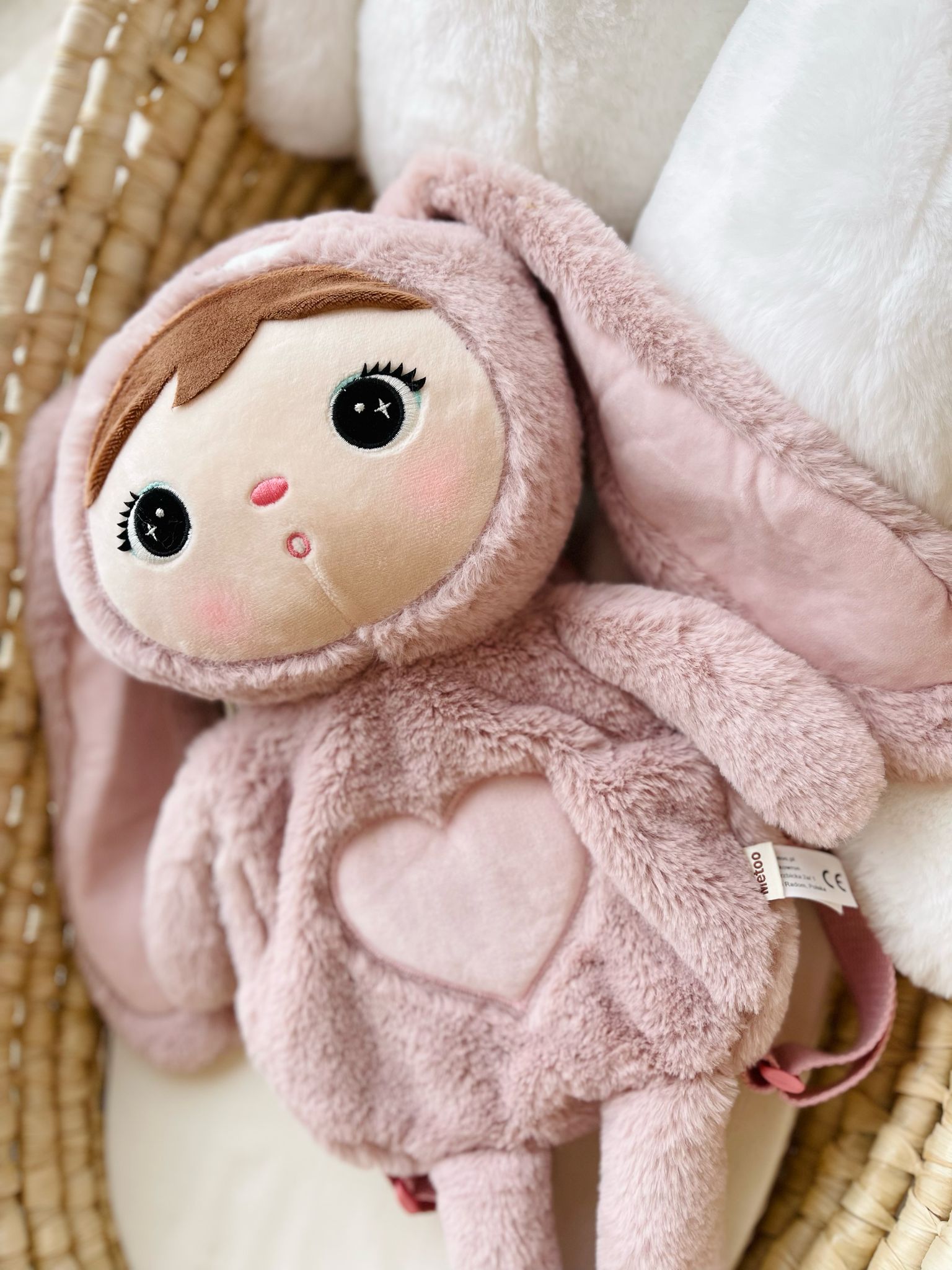 Mięciutki i leciutki plecak z wizerunkiem lalki króliczek z różowym futerkiem. Najlepszy przyjaciel w drodze do żłobka, przedszkola lub podczas wakacyjnych wycieczek. Króliczek Metoo ma na brzuszku słodkie serduszko, któremu nie oprze się żadne dziecko. Jeśli znajdzie się na nim jego własne imię to z pewnością będzie zachwycony takim prezentem.