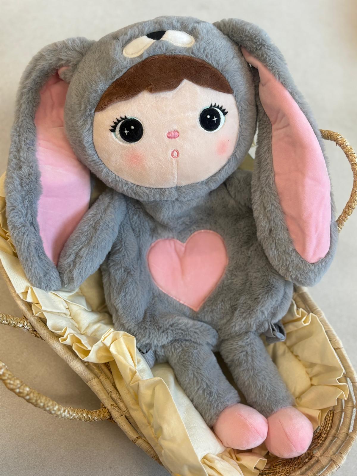 Plecak Królik Metoo- Szaro różowy- Lalka Metoo z imieniem dziecka