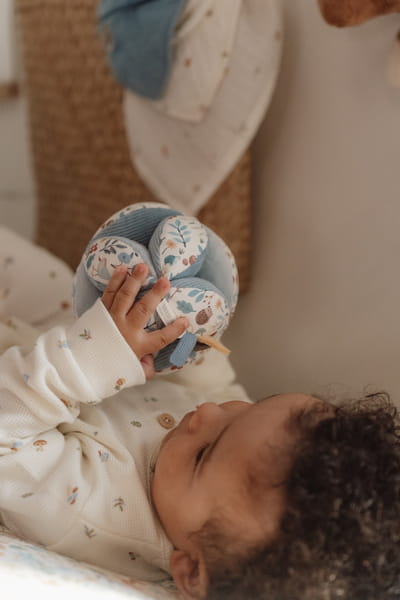 Piłeczka sensoryczna Forest Friends od Little Dutch. Ta piłeczka to wspaniała zabawka, która poprzez różne elementy i faktury materiału pomaga w rozwoju motoryki, ćwiczeniu chwytu oraz pobudza zmysły maluszka. Łatwe do chwytania kokardki i różne zabawne metki z motywami kolekcji Forest Friends zapewnią dziecku zajęcie przez wiele godzin podczas zabawy w łóżeczku lub na podłodze, a radosny dźwięk grzechotki dodatkowo umili ten czas. Świetna, rozwijająca zabawa gwarantowana! Stanowi doskonałe uzupełnienie do pozostałych produktów z kolekcji Forest Friends. Wspaniały pomysł na prezent.