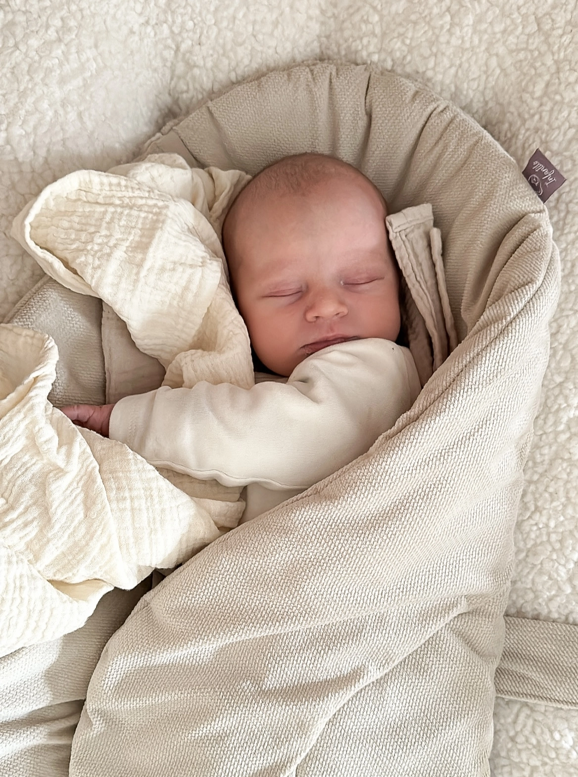 Usztywnienie rożka sprawia, że owinięcie dziecka jest stabilne, co ułatwia noszenie, karmienie i usypianie. Tkanina jest delikatna dla skóry niemowląt, przewiewna i komfortowa w użyciu przez cały rok. Dzięki uniwersalnej konstrukcji rożek może służyć również jako lekka kołderka lub mata do leżenia po rozłożeniu.