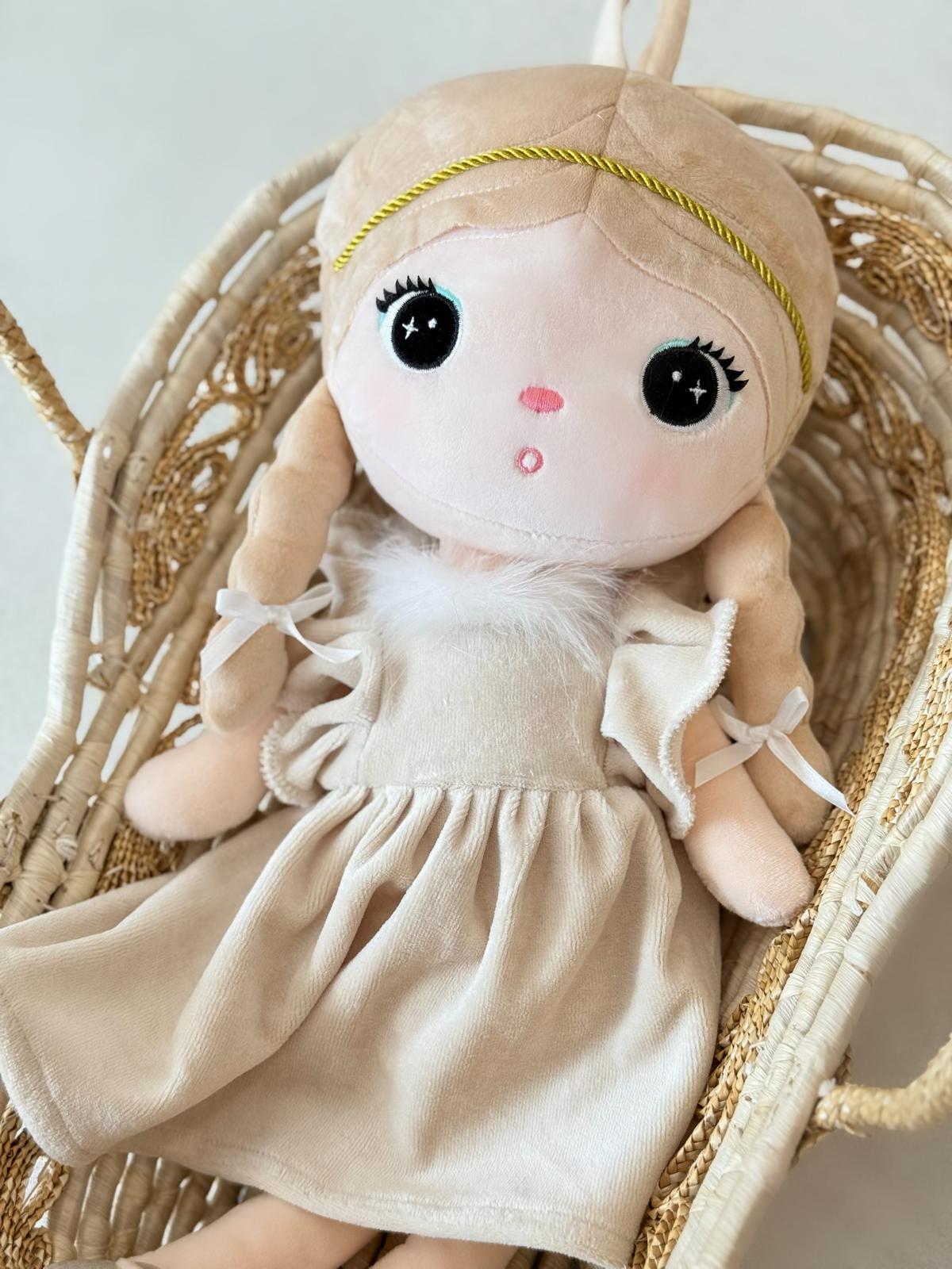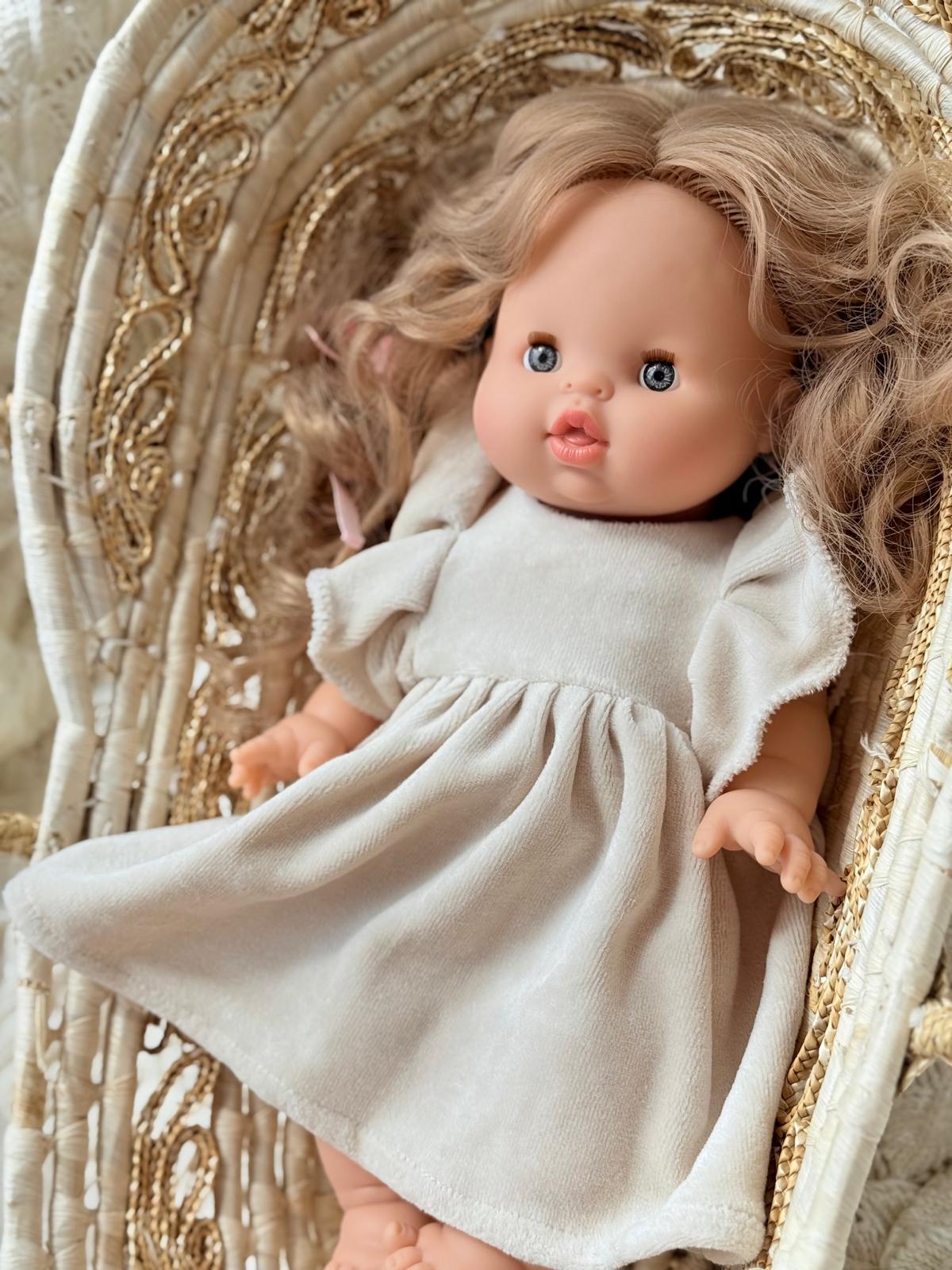 Welurowa sukieneczka idealna dla lalek dziewczynek Miniland 38 cm oraz dla bobasów Paola Reina i Minikane 34 cm.