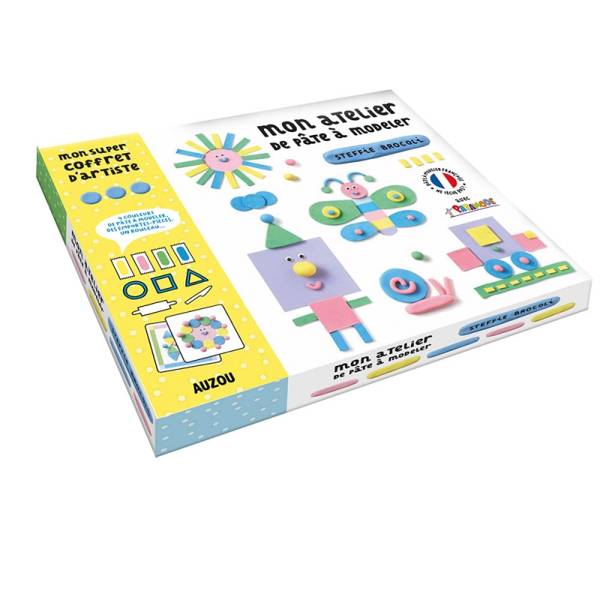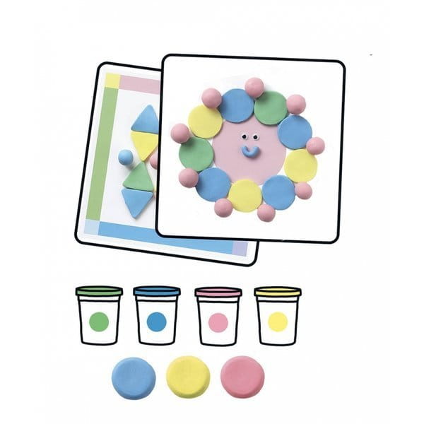 Zestaw Auzou "Pastelowa modelina". Pudełeczko zawiera, 4 tubki pastelowej modeliny w czterech kolorach, wyprodukowanej we Francji, 1 drewniany wałek, 1 mały okrągły nóż, 3 foremki do ciastek, 2 podkładki, 2 pudełka do przechowywania ciasta oraz małe ruchome oczka do tworzenia zwierzątek, figurek z patyków i wielu innych rzeczy z modeliny! Doskonałe ćwiczenie kreatywności i wyobraźni dziecka. Świetny pomysł na prezent.