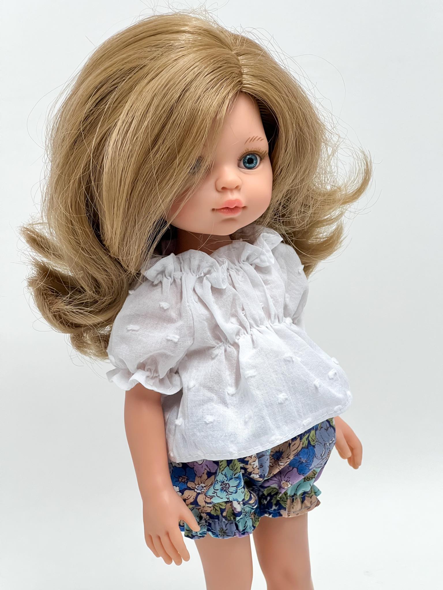 Zestaw Tunika i spodenki niebieska łączka - ubranko dla lalki Paola Reina 32 cm