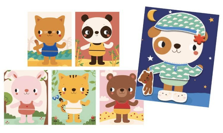 Zestaw artystyczny do projektowania ubioru Zwierzątka od Auzou. Zestaw zawiera 6 kart ze zwierzątkami, 50 kolorowych ubranek do wycięcia oraz 30 naklejek. Pozwalają uczyć malucha poznania i dopasowania ubioru. Zestaw zawiera dużo ciekawych elementów oraz materiałów do kreatywnego tworzenia, pobudza wyobraźnię dziecka. Mnóstwo świetnej zabawy dla całej rodziny gwarantowane.
