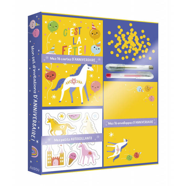 Zestaw do robienia zaproszeń od Auzou. Zestaw zawierający 16 kart wraz z 16 kopertami do stworzenia wyjątkowych zaproszenie dla przyjaciół. W zestawie znajdują się również naklejki, dwa długopisy (jeden złoty i jeden neonowo-różowy) oraz konfetti do włożenia do kopert!