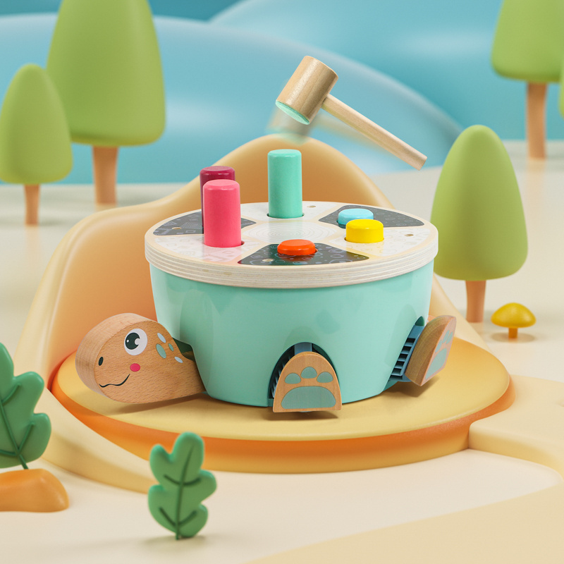 Żółw wbijanka z młoteczkiem dla dzieci – drewniana zabawka motoryczna dla dzieci 18 mies.+ - Topbright