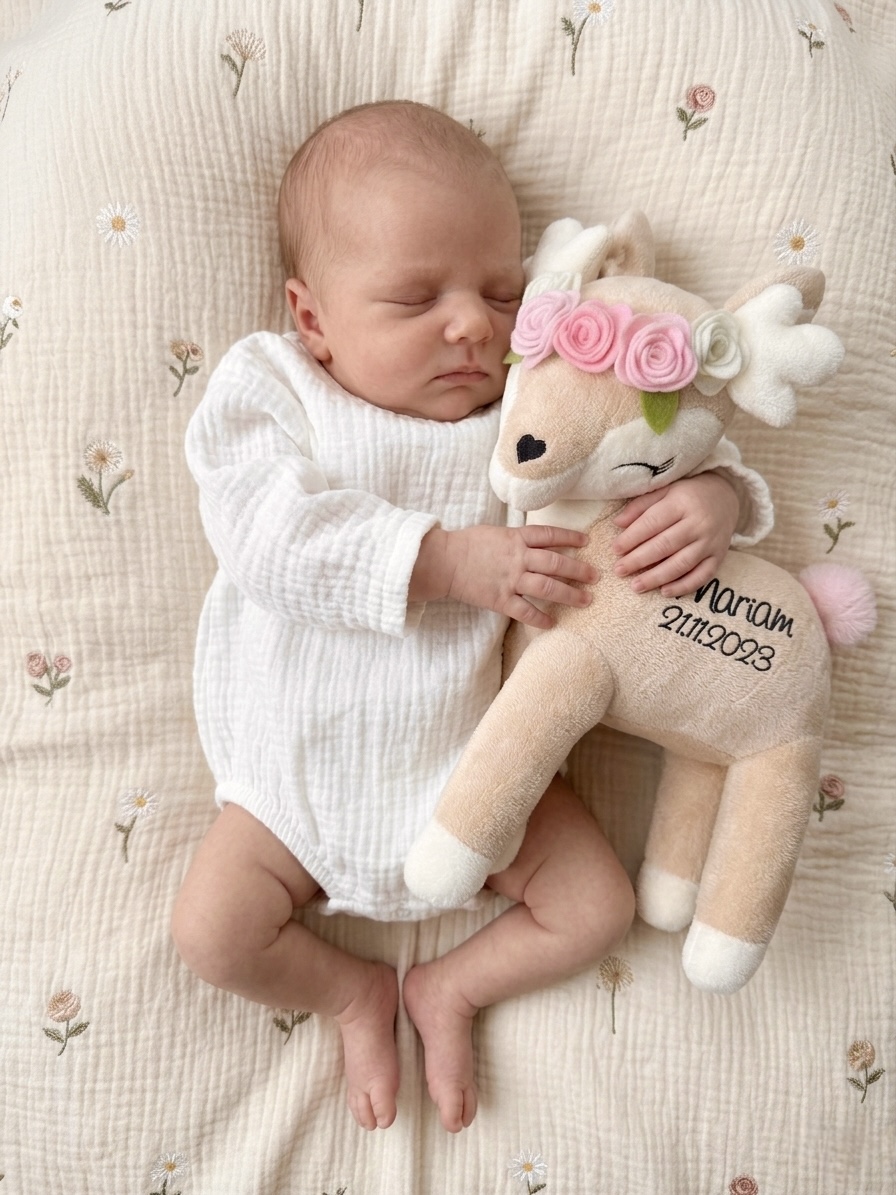 Przesłodka, pluszowa sarenka z pastelowymi kwiatuszkami na główce i z milutkim ogonkiem to idealna przytulanka dla małej dziewczynki w każdym wieku.