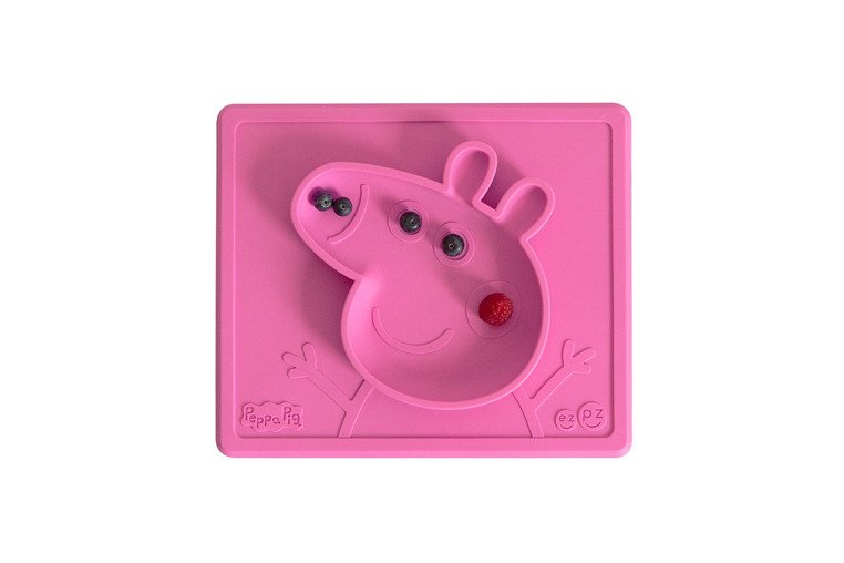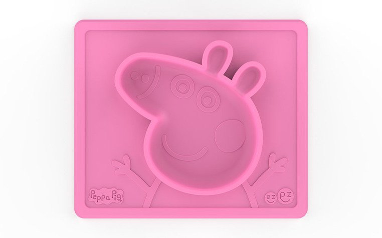 Podkładka i pojemna miseczka w jednym w kształcie głowy świnki Peppy - ulubionej postaci z bajek. Wykonana z najbezpieczniejszego silikonu w kolorze różowym. Może spełniać funkcję zarówno miseczki, jak i talerzyka. Naczynie nadaje się do podawania zimnych, jak i ciepłych potraw.